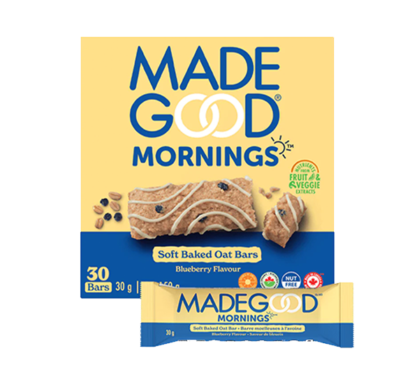 MadeGood Mornings Soft Baked Oat Bars are soft, chewy and just the right amount of sweet. Decadently topped with a vegan chocolate drizzle. Baked with gluten-free oats, organic ingredients, and free from the most common allergens